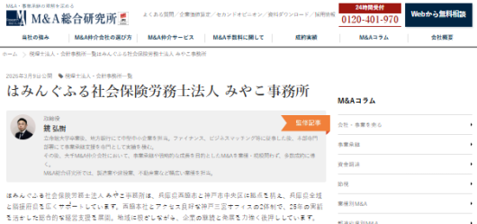 M&A総合研究所が運営する「M&A総合研究所ポータル」にて、『はみんぐふる社会保険労務士法人みやこ事務所』が掲載されました。